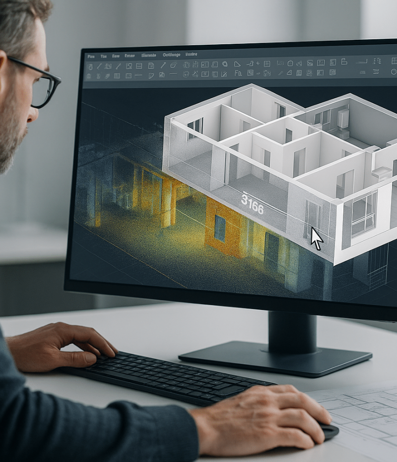 Traditionelle Vermessungsverfahren erfordern oft aufwendige Vor-Ort-Termine, manuelle Messungen und nachträgliche Anpassungen. Mit Laserscanning reduzieren wir den Zeitaufwand erheblich: Innerhalb kurzer Zeit erstellen wir umfassende digitale Zwillinge von Gebäuden oder Industrieanlagen. Diese 3D-Modelle lassen sich direkt in Planungssoftware integrieren und vereinfachen so die Zusammenarbeit zwischen Architekten, Ingenieuren und Bauherren. Fehlerquellen werden minimiert, Planungsprozesse beschleunigt und Projektrisiken deutlich reduziert. Zudem entfallen zahlreiche Messfahrten, wodurch sich auch die Umweltbilanz verbessert.